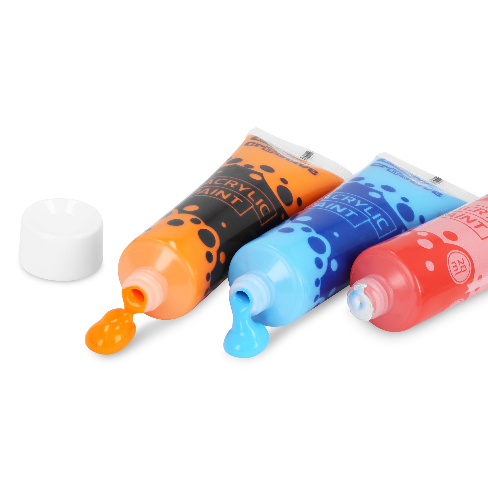 Akrylové barvy mohou používat i děti. Jsou vyráběny na bázi vody, akrylové pryskyřice a pigmentu, takže jsou netoxické. Balení akrylových barev Easy Creative obsahuje 12 intenzivních barev. Krémová konzistence a vysoce kvalitní pigmenty zaručují snadnou aplikaci a velmi dobré krytí malovaných ploch. Díla vytvořená těmito barvami mají živé a trvanlivé barvy.