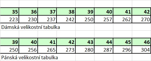Tabulka velikostí