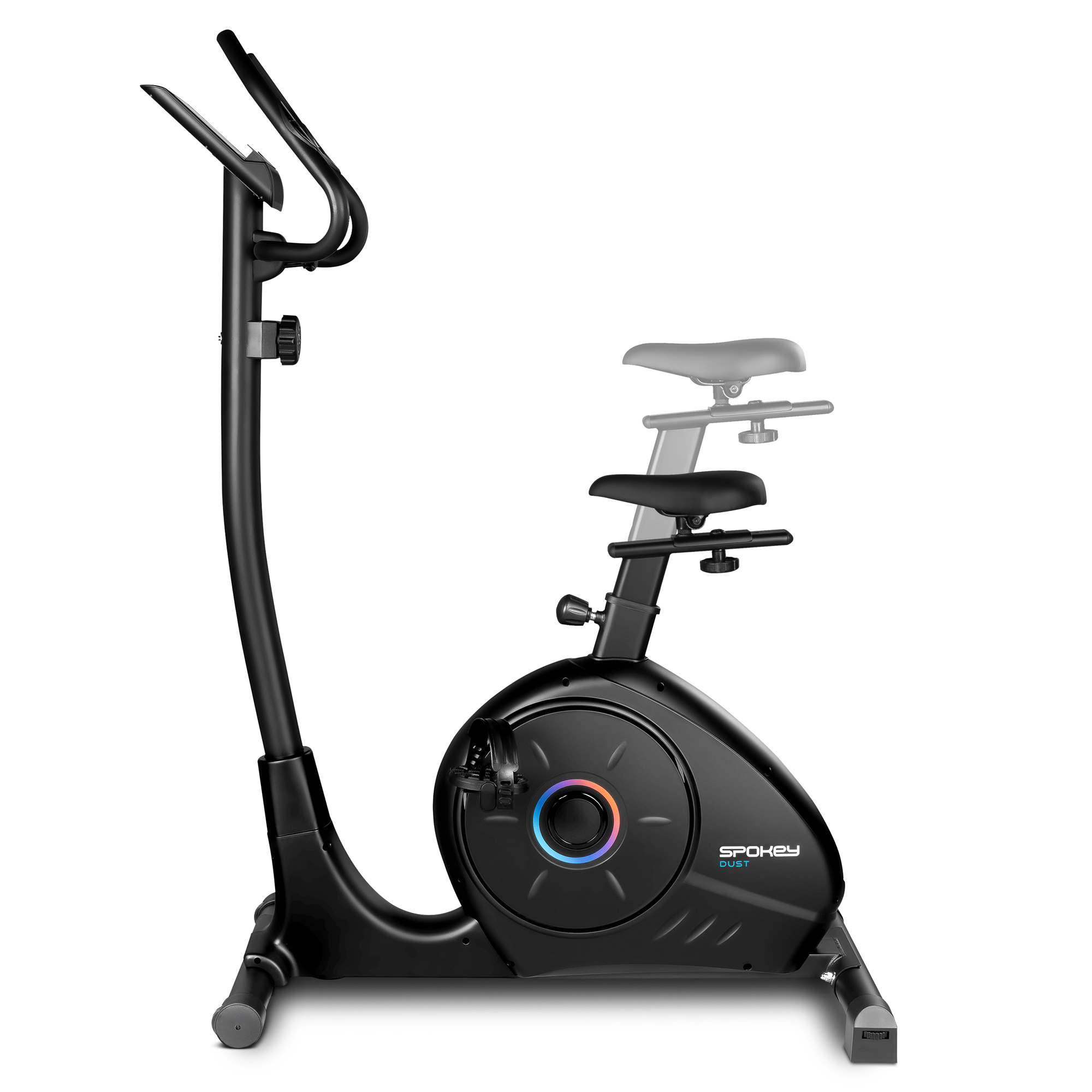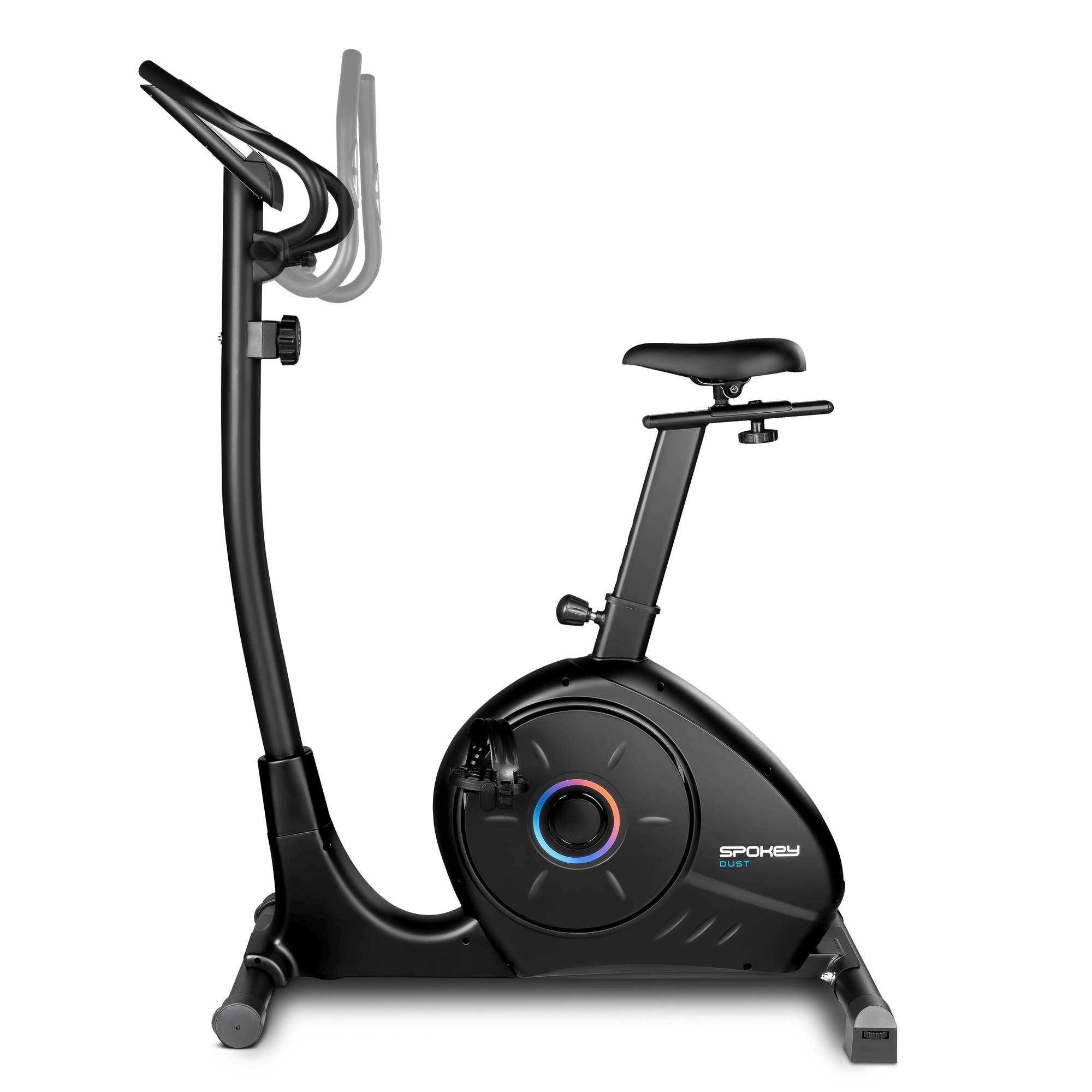 Spokey DUST je moderní magnetický rotoped, který se vyznačuje nízkým průchozím rámem pro snadný nástup a tichým chodem. Díky 8stupňové, manuální regulaci odporu a plynulému chodu 8kg magnetického setrvačníku snadno přizpůsobíte intenzitu cvičení svým cílům - od lehkého zahřátí po náročný kardio trénink. Ergonomické sedlo nastavitelné ve dvou osách a regulovatelný úhel sklonu řídítek zajistí pohodlnou pozici pro každého uživatele.