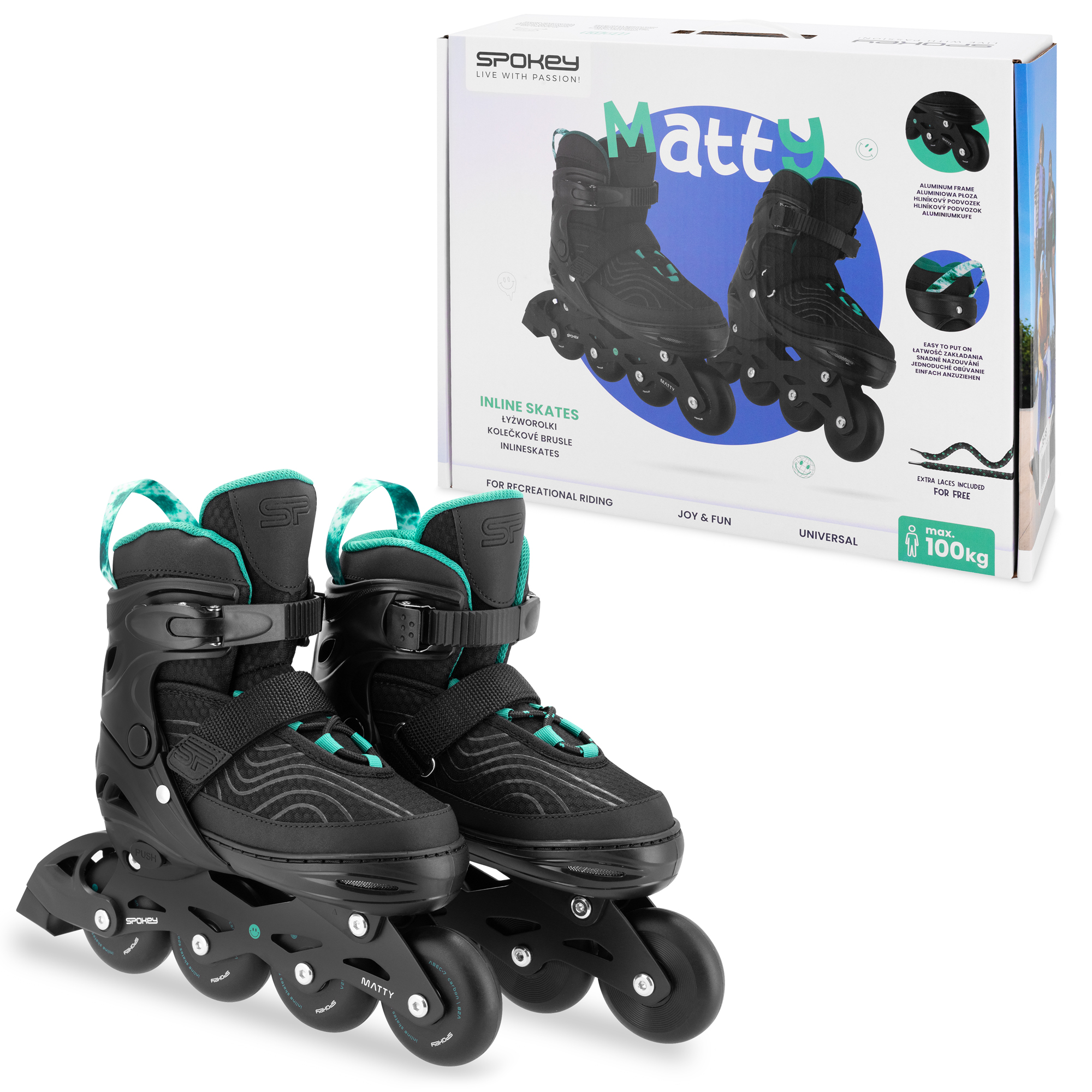 Nastavitelné kolečkové brusle Spokey MATTY jsou nejlepší volbou jak pro začátečníky, tak pro zdokonalování vašich dovedností! Jsou stvořeny pro objevování vášně pro bruslení - pokud chcete začít své dobrodružství, pomohou vám zvládnout základy. A pokud již základy ovládáte, budou brusle MATTY ideální volbou pro rekreační a dynamickou jízdu. To vše díky použití nejlepších parametrů a moderních technologických řešení!