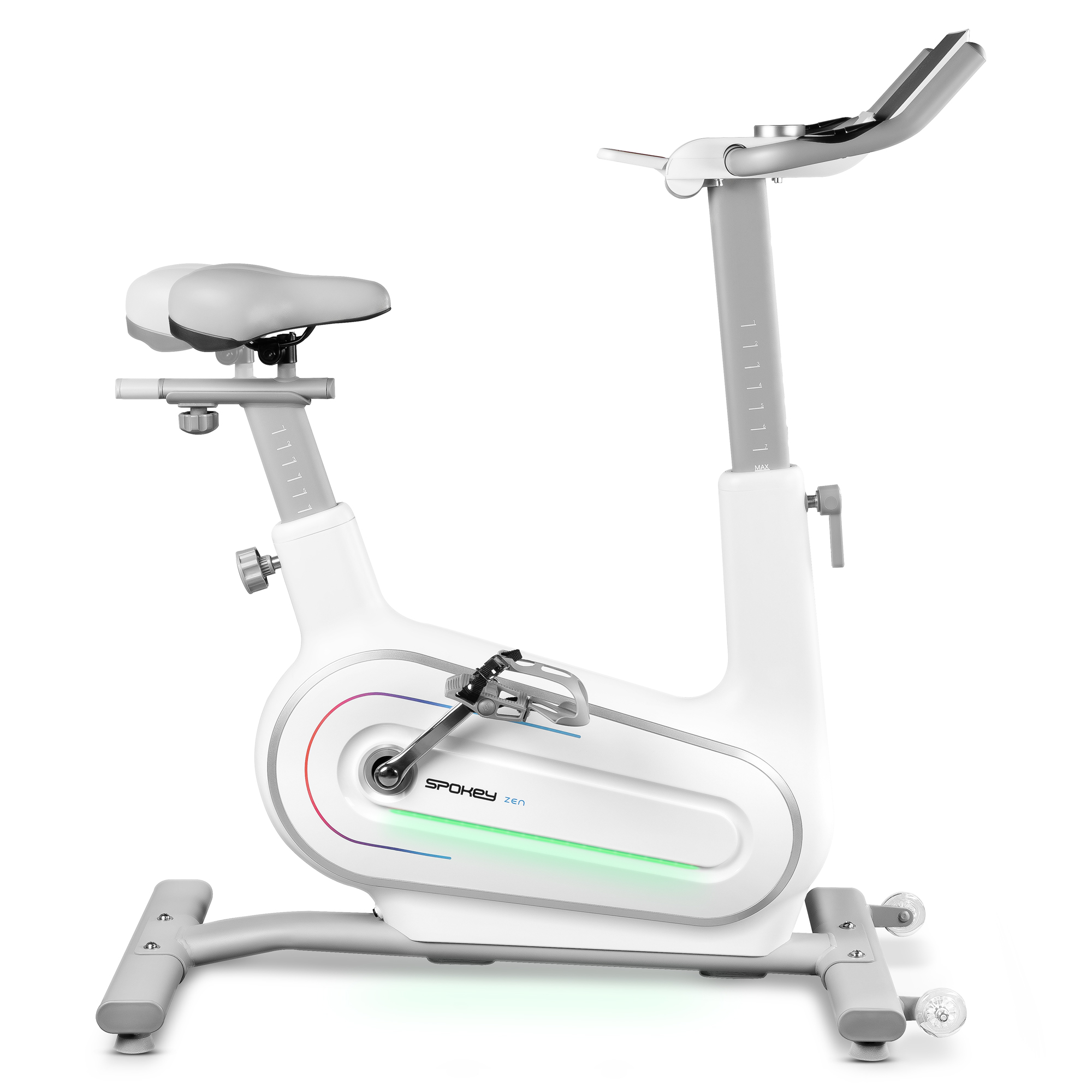 Spokey ZEN je rotoped vybavený moderním elektromagnetickým pohonem, který umožňuje precizní řízení zátěže v 32 úrovních. Snadno tak přejdete od lehkého kardia k intenzivním intervalovým tréninkům.