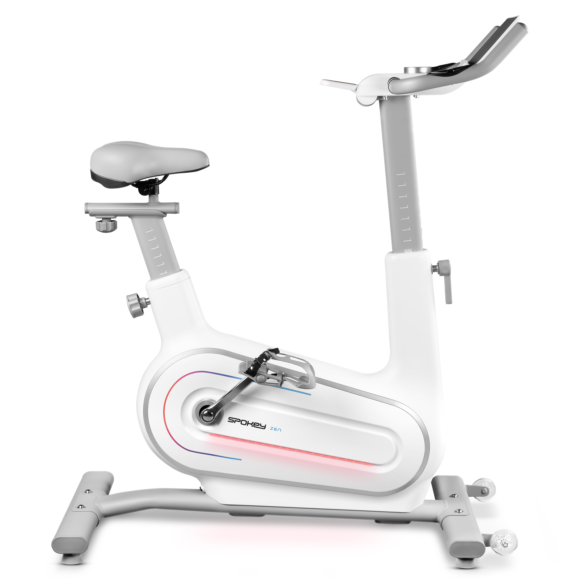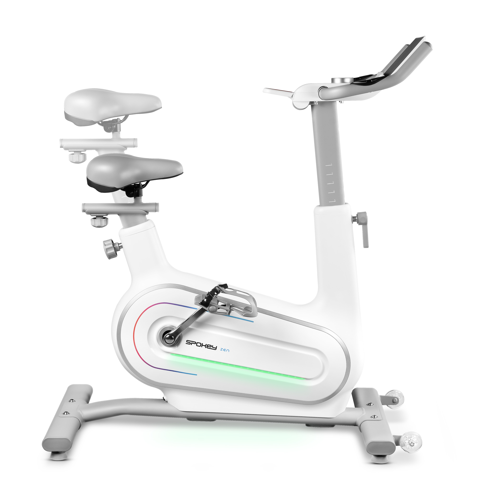 Hledáte rotoped, který kombinuje moderní design se špičkovou funkčností? Spokey ZEN je elektromagnetický rotoped určený pro domácí použití, stvořený i pro ty nejnáročnější uživatele. Nabízí velmi široký 32stupňový rozsah odporu, což umožňuje přizpůsobit intenzitu tréninku každé úrovni pokročilosti. Díky regulaci řídítek a sedla si ho perfektně přizpůsobíte svému vzrůstu. Funkce Bluetooth, kompatibilita s aplikacemi Kinomap a Zwift a LED podsvícení reagující na tempo jízdy zajistí, že rotoped Spokey ZEN poskytne nejen efektivní, ale i maximálně motivující trénink.